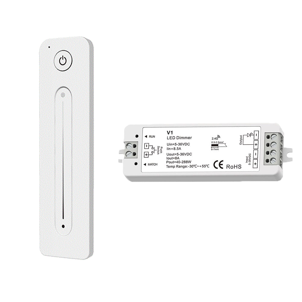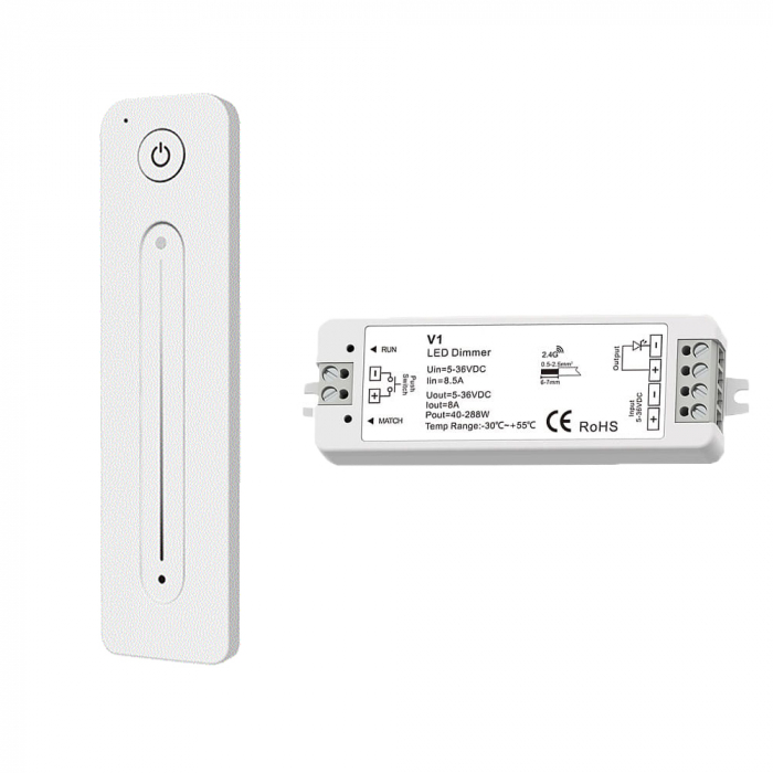 Setul de variatoare radio MONO Skydance LED este un sortiment gata făcut, constând dintr-o telecomandă și un receptor LED, care permite controlul iluminării LED monocrome (de exemplu, bandă LED mono monocoloră). Acest variator permite accesul individual și operarea unei zone, care poate fi accesată folosind o telecomandă radio. Comunicarea cu receptorul este complet wireless, deoarece utilizează un semnal radio la nivelul de 2.4GHz.