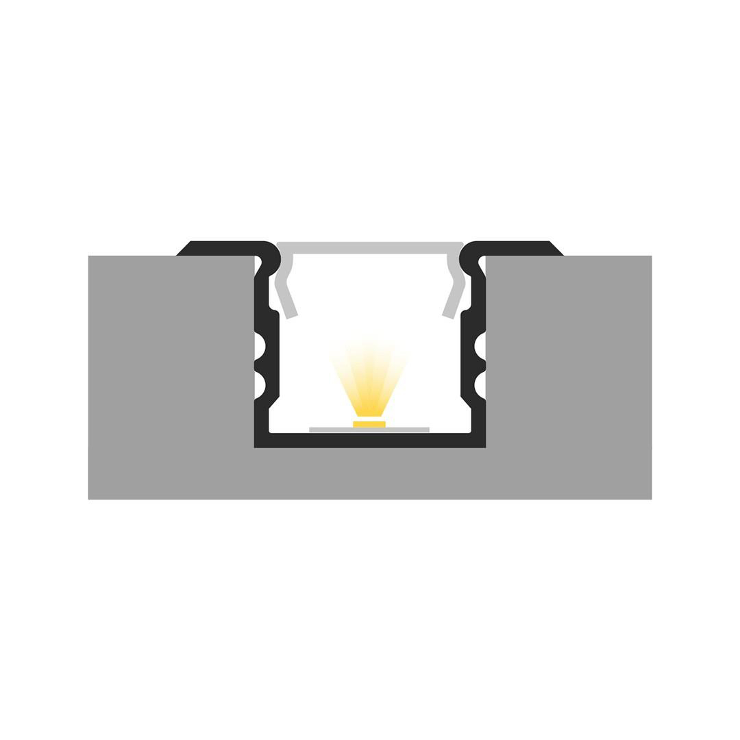 Profilul LED P18-2 este recomandat pentru caneluri frezate și tăiate. Poate fi încastrat în diferite tipuri de materiale (gips-carton, plăci aglomerate, pereți, tavane etc.). Aripile proiectate estetic asigură o acoperire completă a marginilor canelurilor. Având în vedere pereții săi înalți și adâncimea de 15 mm, se aplică frecvent atunci când este necesară o linie uniformă de lumină (efect fără puncte). Aplicată în principal în industria mobilei și diferite tipuri de interioare.