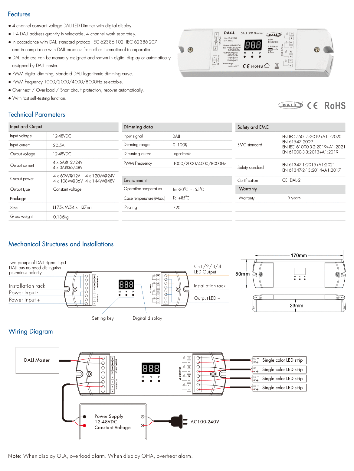 Controler LED DALI - Mono - 12-24 DC 4x5A - DA4-L