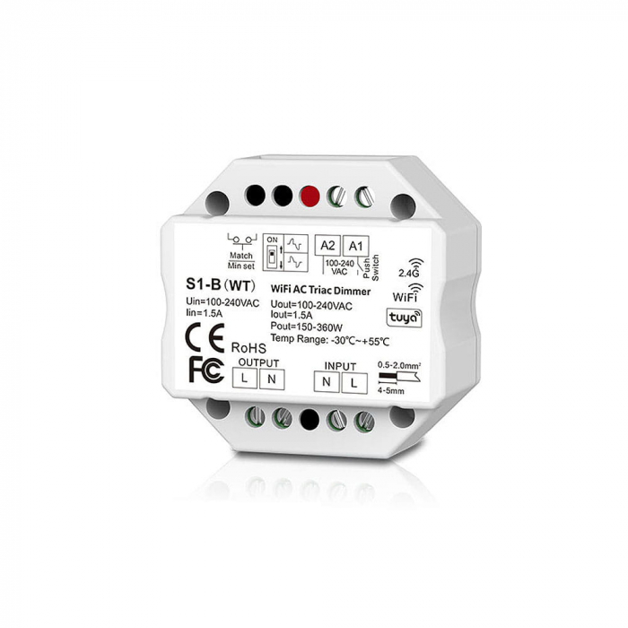 | Metoda de control al iluminatului | prin radio, suplimentar prin WiFi și prin cablu (buton 2.4GHz / WiFi / NO) |