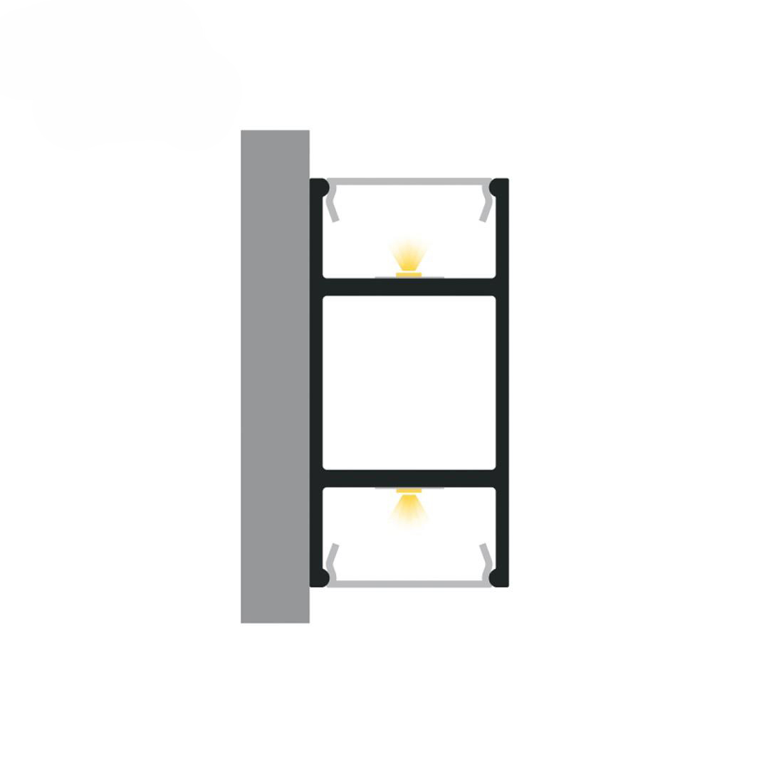 Profilul LED P13-10 aparține familiei profilelor de lumină directă / indirectă. Oferă un spațiu pentru 2 benzi LED și creează un fiting cu lumină care strălucește în două direcții opuse