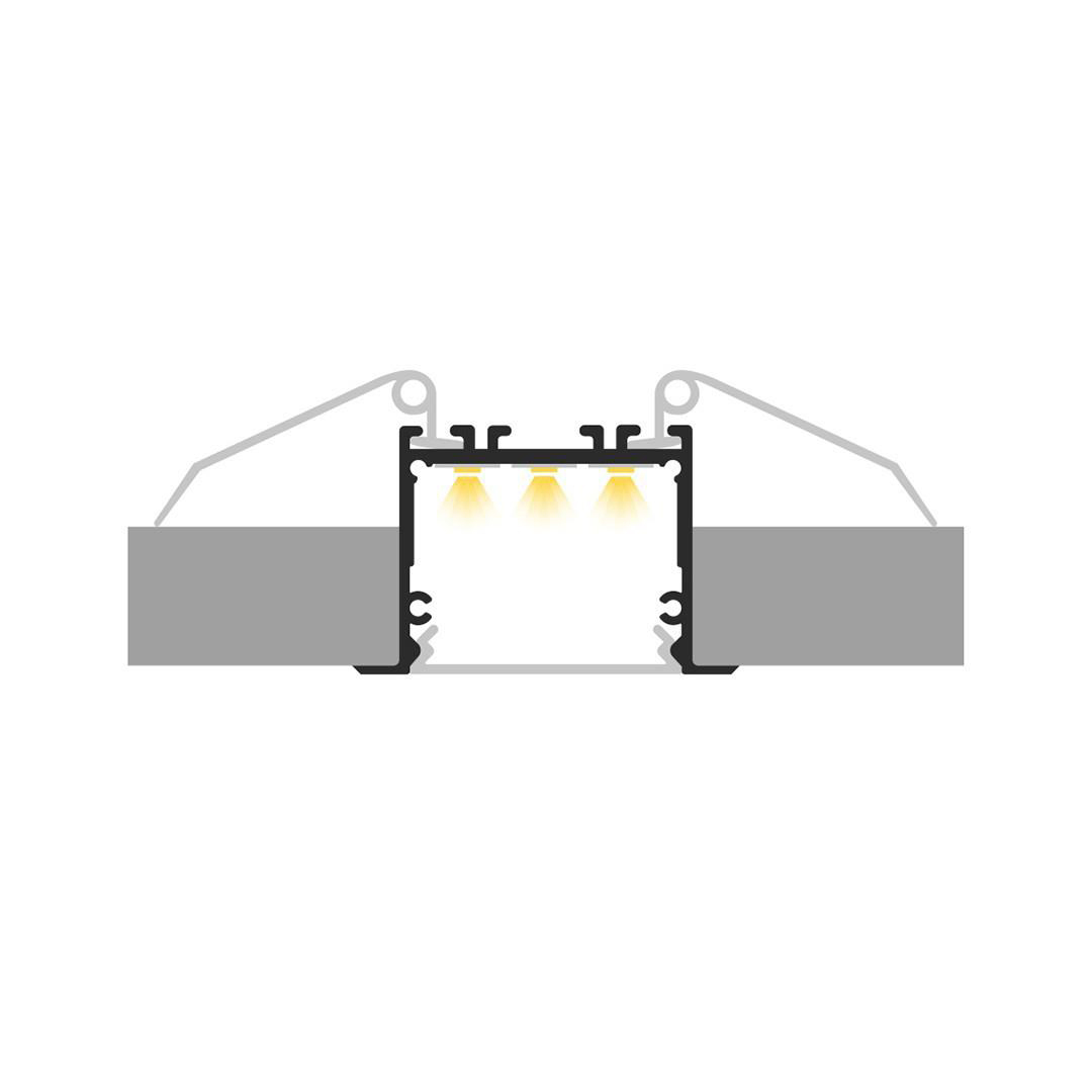 Profilul arhitectural P22-1 este soluția perfectă pentru încastrarea în găuri frezate sau tăiate. Indiferent de tipul suprafeței – plăci de gips-carton, plăci de mobilier, pereți sau tavane – acest profil deschis se va potrivi perfect. Aripile sale estetice vor acoperi complet marginile deschiderii, creând un efect elegant. Profilul P22-1 poate găzdui 2-3 benzi LED și este ideal pentru crearea de corpuri de iluminat complexe în clădiri comerciale sau acasă.